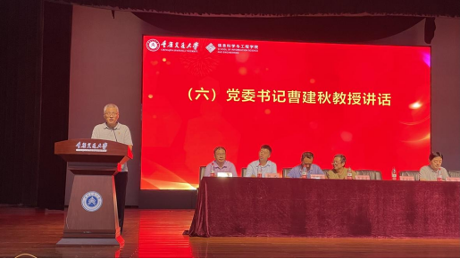 最后,学院党委书记曹建秋教授讲话。曹书记讲述了当前大数据、人工智能、信息行业发展的现状及前景,使命光荣、重任在肩,希望全体新生一是明确目标,努力学好专业知识;二是合理规划,促进德智体美劳全面发展;三是坚定信念,脚踏实地成长成才,把个人发展主动融入国家创新战略、民族复兴伟业。