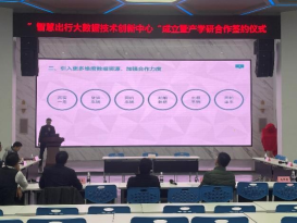 产学研处处长冯瑞胜讲话并对“智慧出行大数据创新中心”提出三点要求,一是主动服务国家及地方战略,激发创新中心职能;二是以“智慧出行大数据创新中心”成立为契机,构建高效协同的创新合作机制,为校企合作创新机制、创新办法作出贡献;三是积极发挥“智慧出行大数据创新中心”的数据资源能力,为学校发展、学科建设、传统学科改造升级提供信息经验和信息方案。